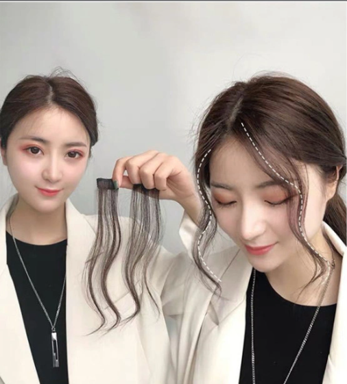 Tóc Mái Thưa Chẻ Ngôi Bằng Tóc Thật 100% - Kiểu mái giả mùa hè