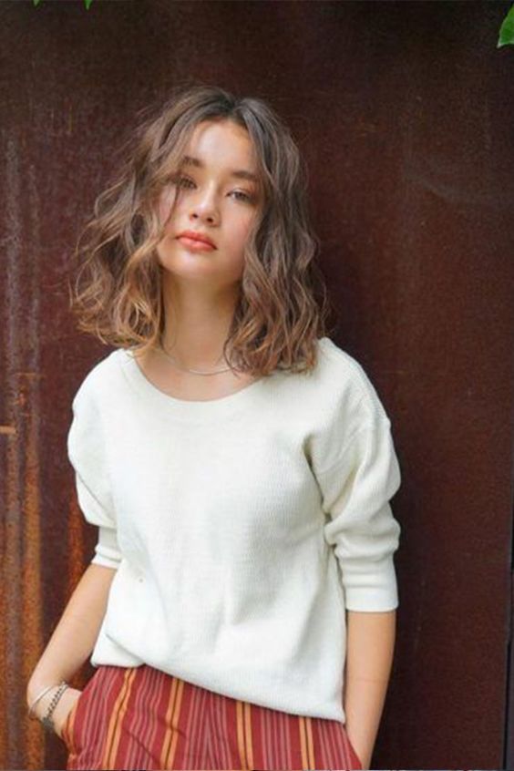 Tóc ngắn xoăn sóng nước rất được ưa thích trong nhiều năm trở lại đây bởi sự cuốn hút thanh lịch và phù hợp với nhiều lứa tuổi. Chỉ cần phá cách một số chi tiết sáng tạo bạn có ngay được kiểu tóc mới lạ độc đáo. Một chút màu nhuộm sáng như nâu tây, nâu đỏ hay nâu đồng bạn sẽ trở nên nổi bật. Kiểu tóc xoăn sóng ngắn này chăm sóc rất dễ dàng, không quá cầu kỳ cũng như giản dị cực phù hợp với các chị em công sở.