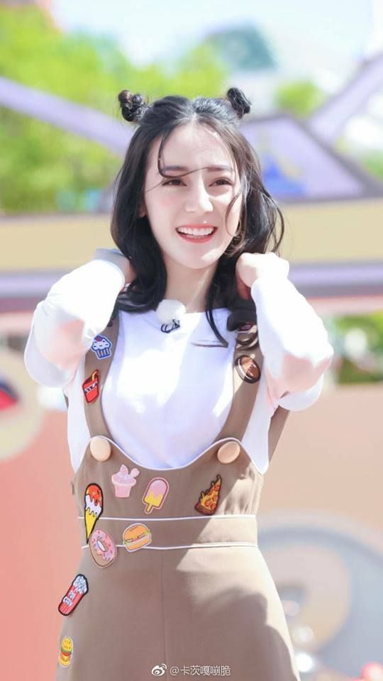Dương Siêu Việt mỹ nhân sở hữu gương mặt phúng phính với đôi mắt to tròn, kiểu tóc "nữ sinh" này đã giúp cô thành công có được diện mạo trong trẻo và khả ái. Angela Baby thường xuất hiện với mái tóc xoăn dài buộc 2 bên trên các chương trình thực tế, kiểu tóc giúp bà xã Huỳnh Hiểu Minh thêm xinh đẹp, trẻ trung chẳng khác nào thiếu nữ đôi mươi.