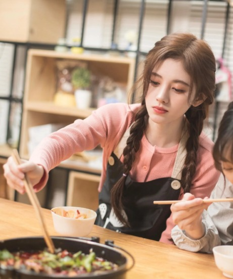 Mỹ nhân 4000 năm - Cúc Tịnh Y diện kiểu tóc tết bím đơn giản kết hợp với kiểu trang điểm nhẹ nhàng, tôn lên gương mặt thanh tú, ngọt ngào. Hay hình ảnh cực kỳ cool ngầu, cá tính của Tống Thiến khi diện kiểu tóc tết bím 2 bên, kết hợp với khuyên tai tròn bản to, trong trang phục gợi cảm.
