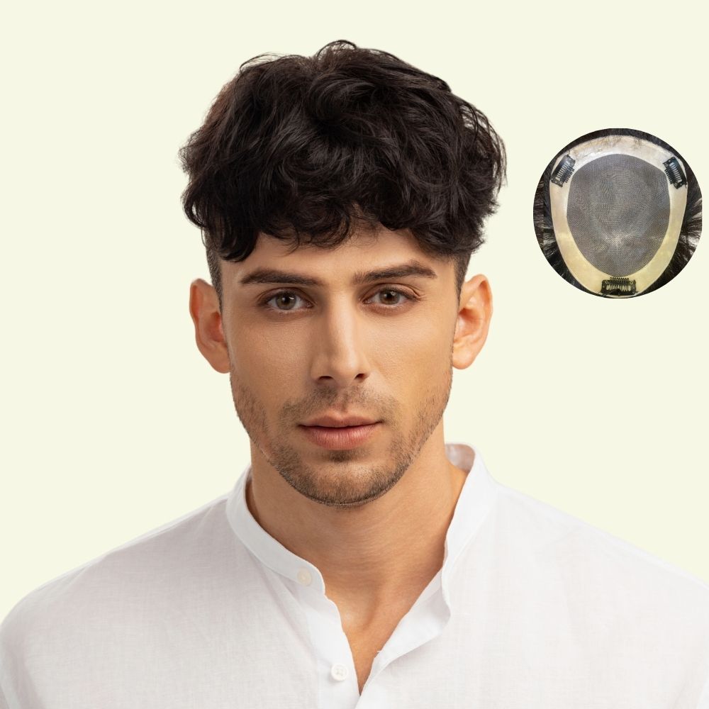 Tóc Giả Nam Che Phủ Đỉnh - Xoăn Sóng Nâu Đen