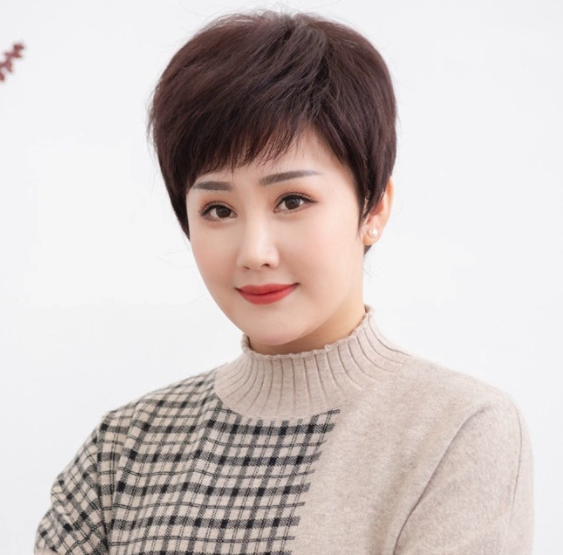 Và chốt bảng trong danh sách này đó chính là kiểu tóc giả ngắn tém thời trang được làm từ 100% tóc thật vô cùng đẹp và tự nhiên. Nếu bạn muốn tìm một kiểu tóc giả ngắn có kiểu dáng mới mẻ trẻ trung nhưng vẫn phù hợp với độ tuổi trung niên thì đây chính là một gợi ý tuyệt vời đấy.