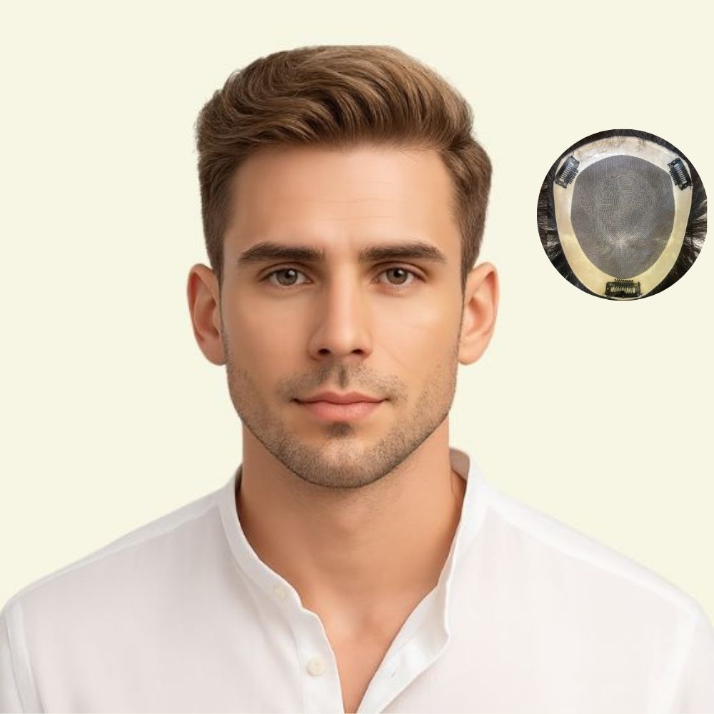 Tóc Giả Nam Kiểu Châu Âu Vuốt Ngược Bằng Tóc Thật