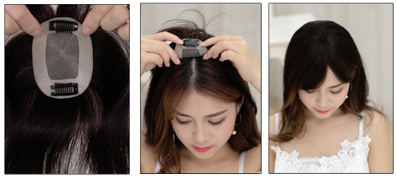Tóc mái đỉnh PHỦ HÓI – CHE BẠC: Không nhất thiết ở độ tuổi này chúng ta phải sử dụng cả một bộ tóc nguyên đầu, đôi khi chỉ là phần tóc trên bị thưa một chút, bạc đi một chút. Vậy thì mái đỉnh PHỦ HÓI – CHE BẠC là giải pháp tốt nhất dành cho bạn rồi. Về cách sử dụng thì khỏi cần bàn cãi, chỉ cần kẹp lên và điều chỉnh cho đúng khung đầu sau đó dùng lược chải để hòa lẫn chung với tóc thật của mình là xong.