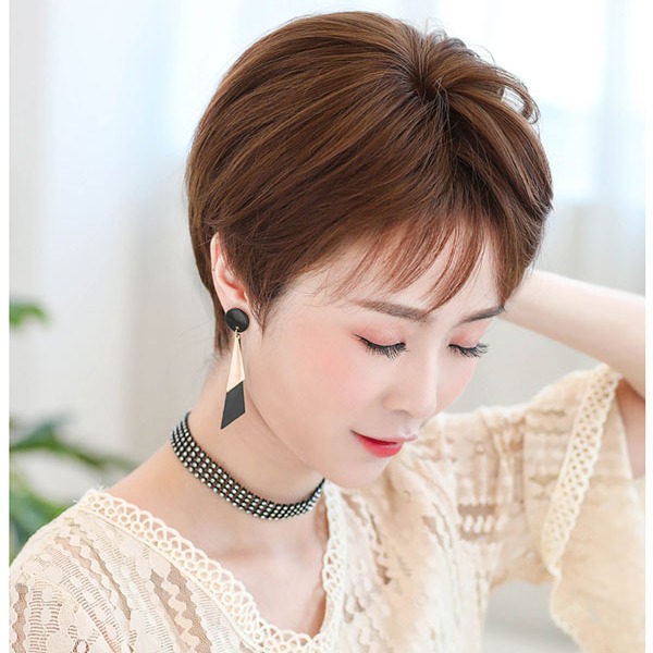 Còn đối với những ai muốn trông thật phá cách hoặc muốn tìm một kiểu tóc giả ngắn vừa trend vừa dễ áp dụng thì có thể tham khảo kiểu này nhé! Về độ tự nhiên và tính thời trang của em này thì bạn sẽ không cần phải bàn cải nhiều. Nó cũng có sẵn khá nhiều màu để bạn có thể thoải mái chọn lựa.